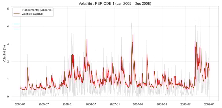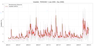 Pour notre analyse du MASI, nous avons utilisé un modèle GARCH(1,1). Pas de panique, voici comment il "lit" le marché :